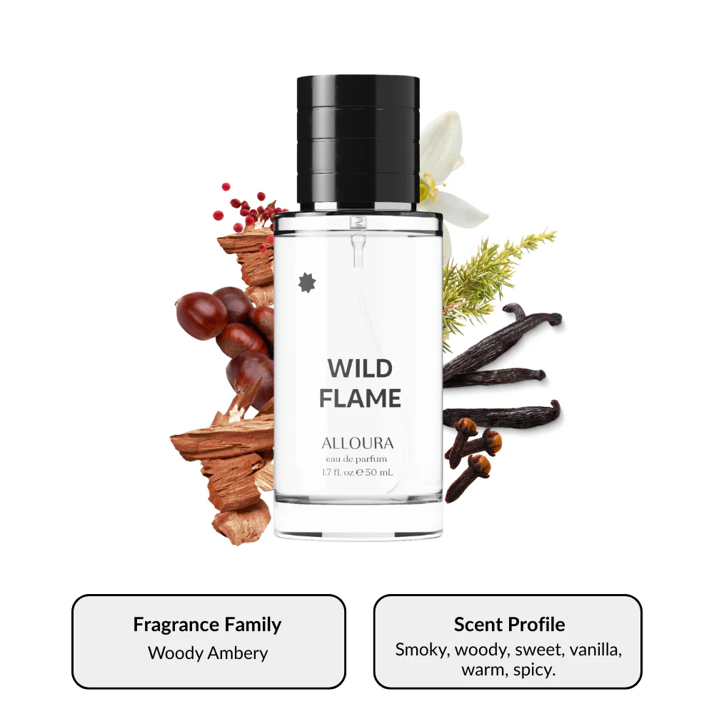 Inspired by Replica By the Fireplace, this warm and daring cologne fuses smoky woods, chestnut, and vanilla with an added pheromone spark. For the man who owns the night, Wild Flame ignites attraction and lingers long after the fire fades.